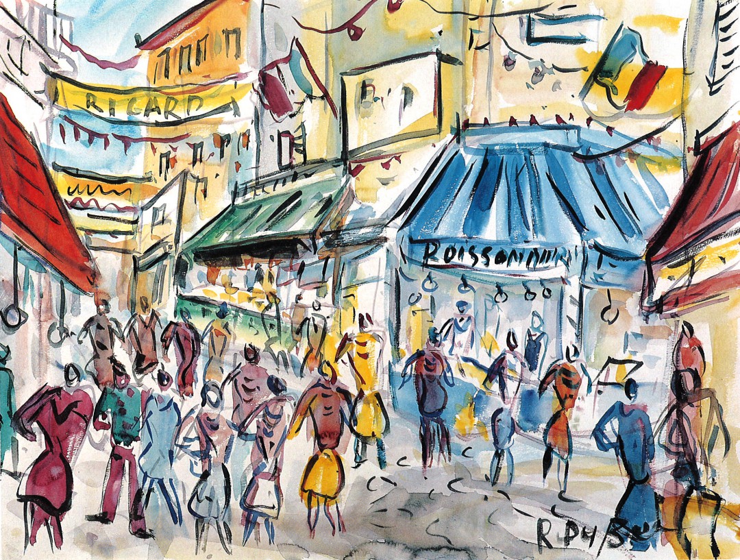 Roland Dubuc - La rue des Abbesses Aquarelle 65 x 51 cm Signature en bas à droite (Collection particulière)