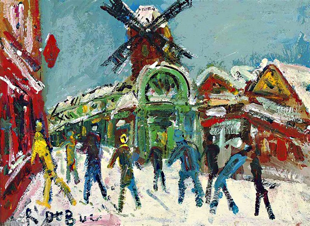 « On ne peint pas avec des principes, mais avec ses tripes » affirmait Vlaminck. Ainsi en est-il de Roland Dubuc dont chaque composition semble résulter d’un défoulement, d’une irrésistible impulsion sinon de quelque furie de peindre, maîtriser l’espace pictural, soumettre la matière. Ce sont alors les rutilances du restaurant La mère Catherine, celle des rideaux d’un cirque où se produisent Les clowns musiciens (des souvenirs vécus au premier degré) et encore, l’auvent du Consulat, le bleu, couleur froide et statique, mis en oeuvre pour les bateaux au repos dans Le grand Bassin d’Honfleur, le jaune lumineux se taillant la belle part de la toile pour tel Paysage de la campagne.