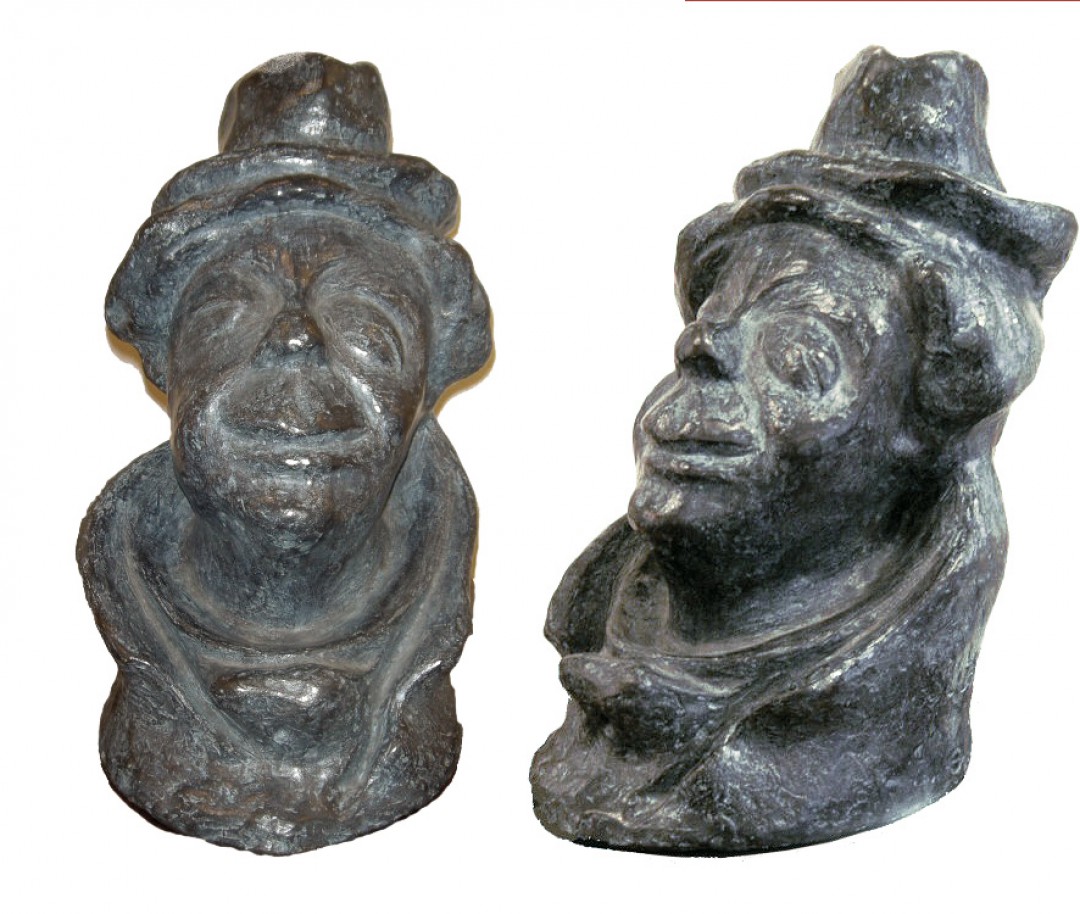 Roland Dubuc - L'auguste, clown grand modèle Bronze à cire perdue, patine ardoise 29 x 19 x 26 Fonte Serralheiro Tiré à 12 exemplaires numérotés de 1 à 8 et de I à IV (Collection particulière)