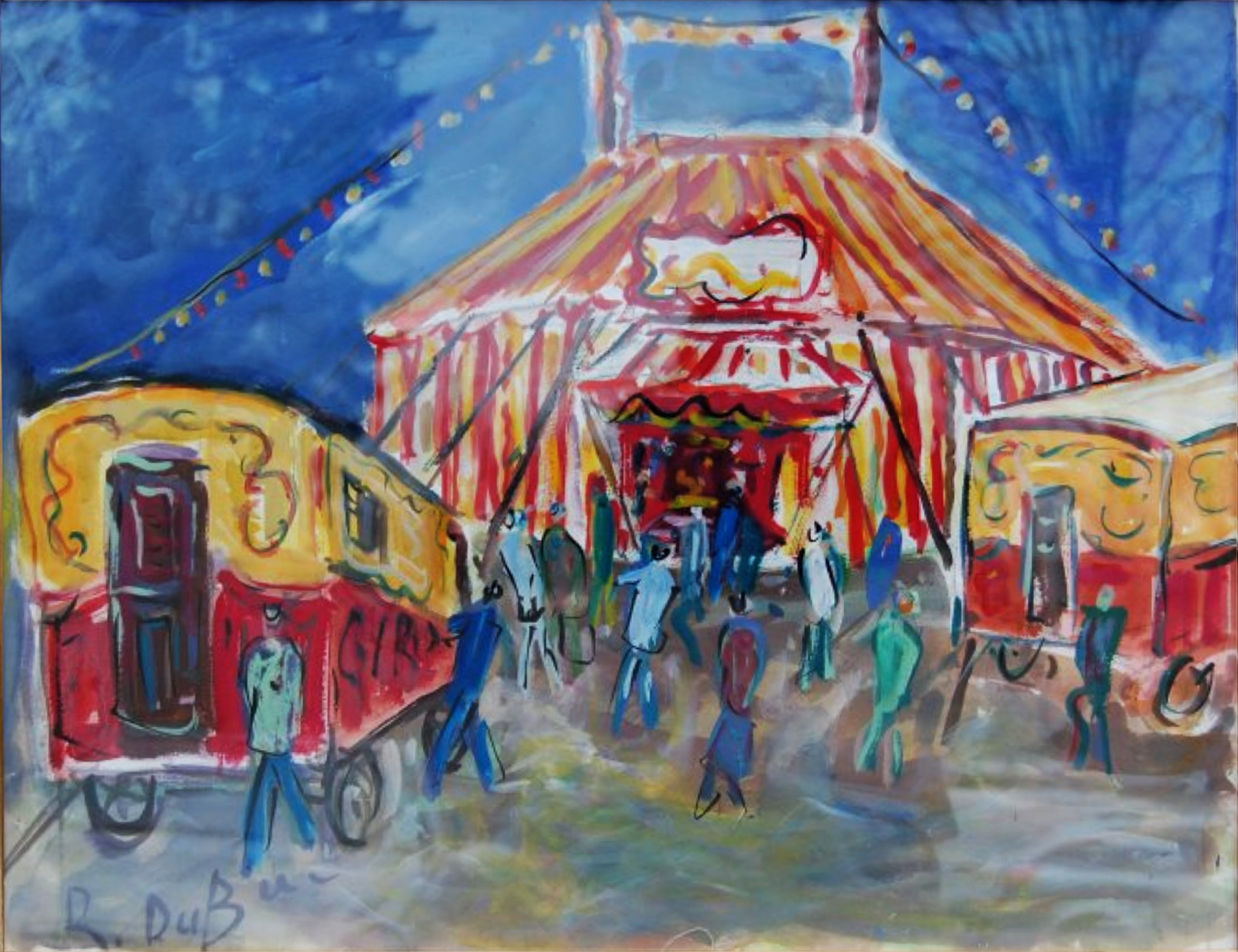Roland Dubuc - Le chapiteau de cirque Gouache sur papier 63 x 48 cm Signature en bas à gauche (Collection particulière)