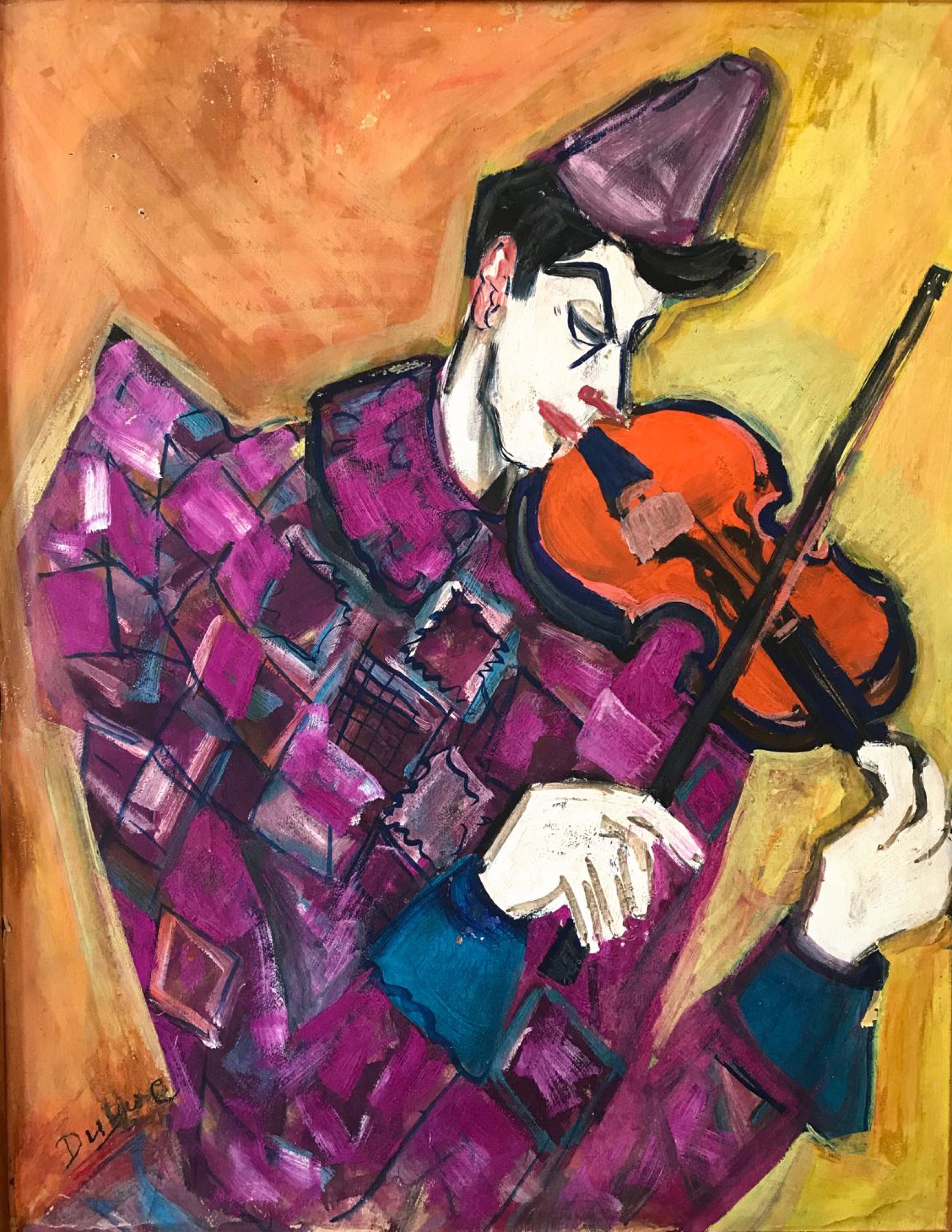 Roland Dubuc - Le Clown blanc violoniste Gouache sur papier Signature en bas à gauche (Collection particulière)