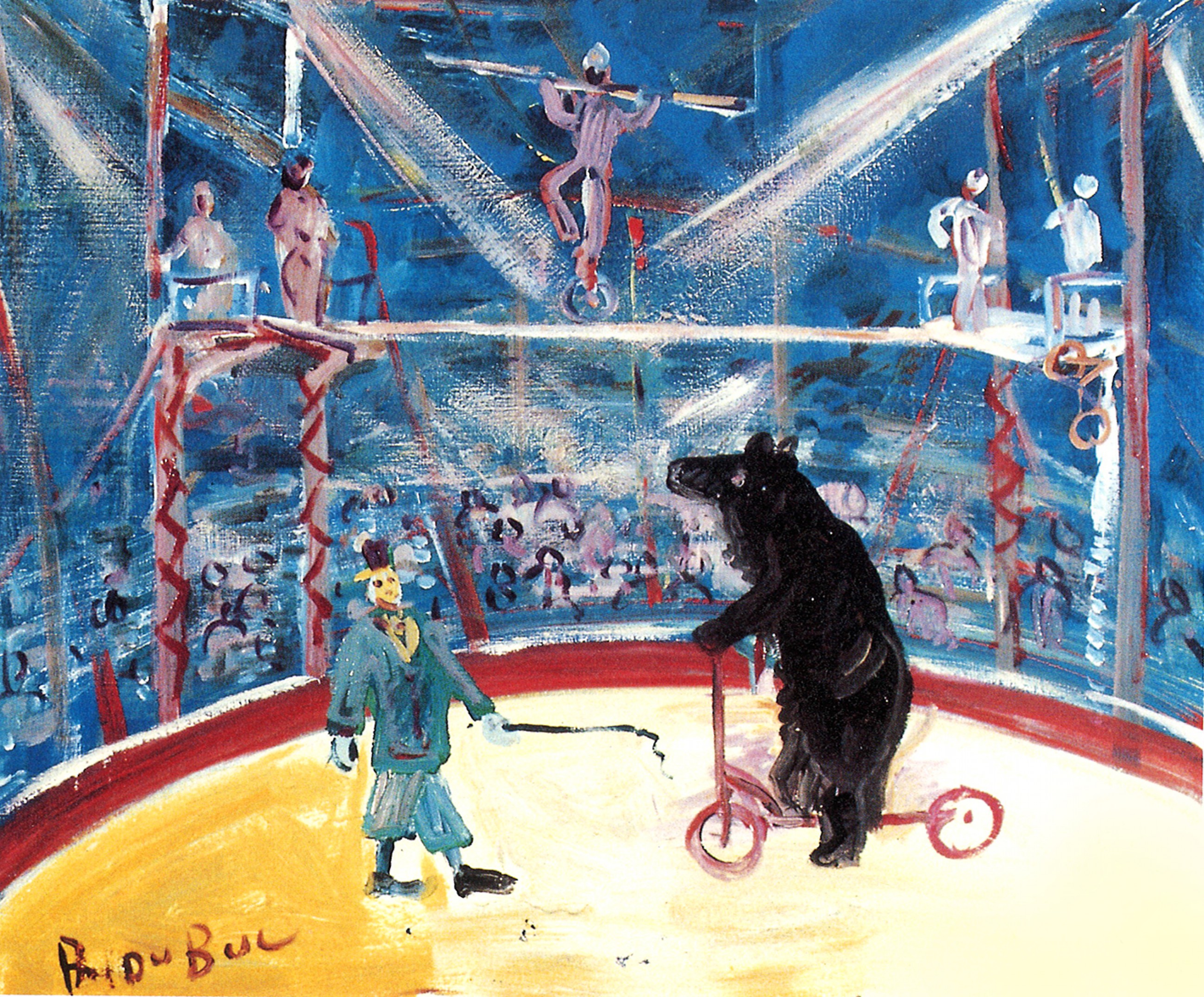 Roland Dubuc - Le clown dompteur Huile sur toile 74 x 61 cm Signature en bas à gauche (Collection particulière)