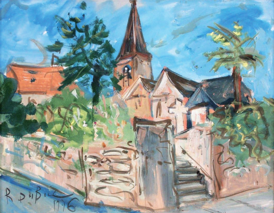 Roland Dubuc - Un village Gouache - 1976 62 x 48,5 cm Signature en bas à gauche (Collection particulière)